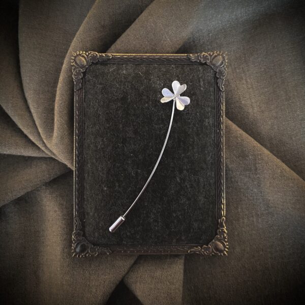 Hõbedast käsitsi valmistatud ristikheinaleht on ruumiline ja mängib kaunilt valguse käes peegeldades erinevaid nurki. Seda prossi saab kanda mitmel erineval moel: leheke suunaga alla, üles või küljele, kinnitades seda läbi kanga ühe suure või mitme väikese pistega. Selle ajatu disainiga prossi saab kanda nii igapäevaste rõivastega kui ka pidulikel puhkudel, lisades elegantsi ja stiili igale riietusele. Prossi kinnitus on metallist kork, mida fikseerib sissepeidetud silikoon.