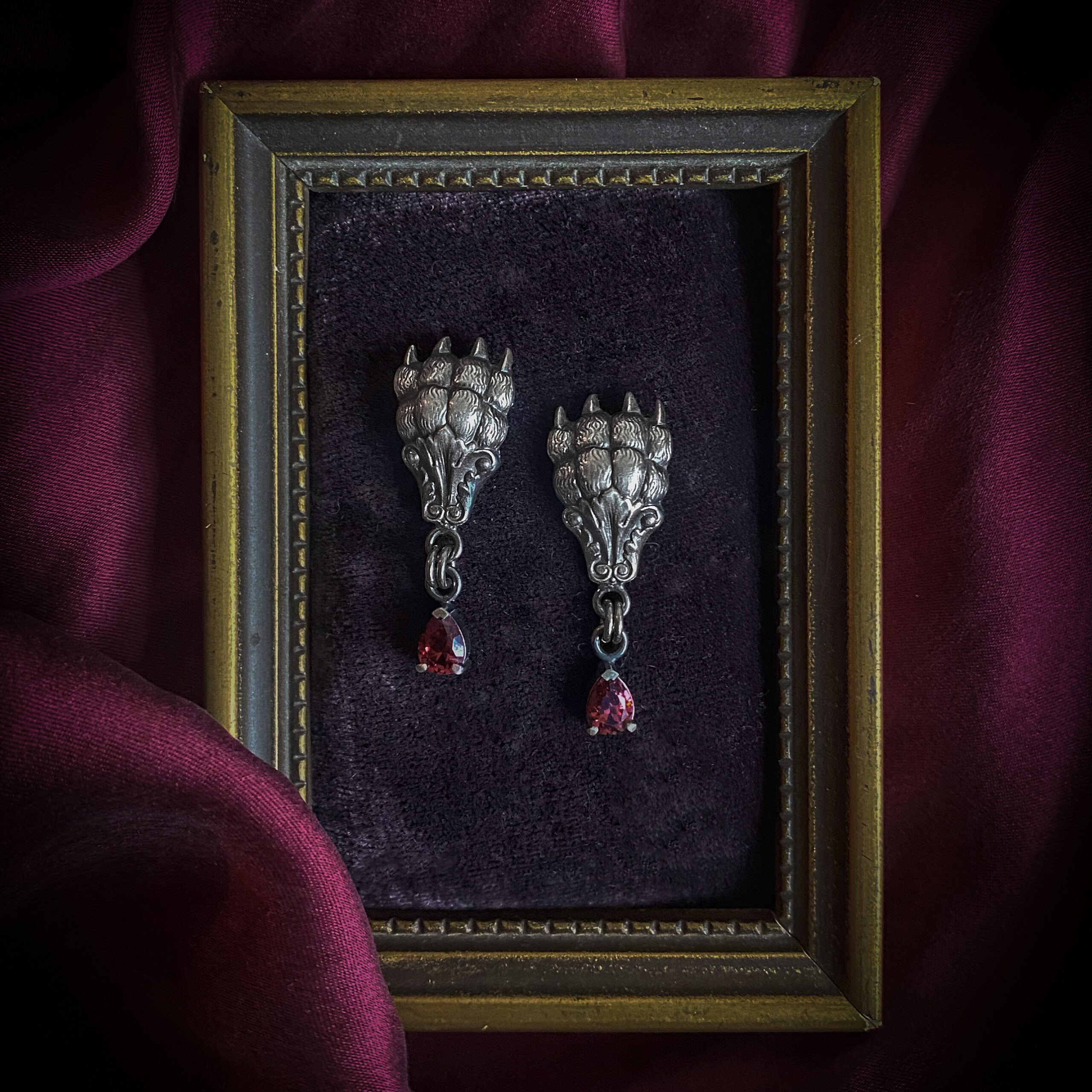 Käppade ja merlot tilkadega kõrvarõngad seeriast ‘Igaviku Sosinad’