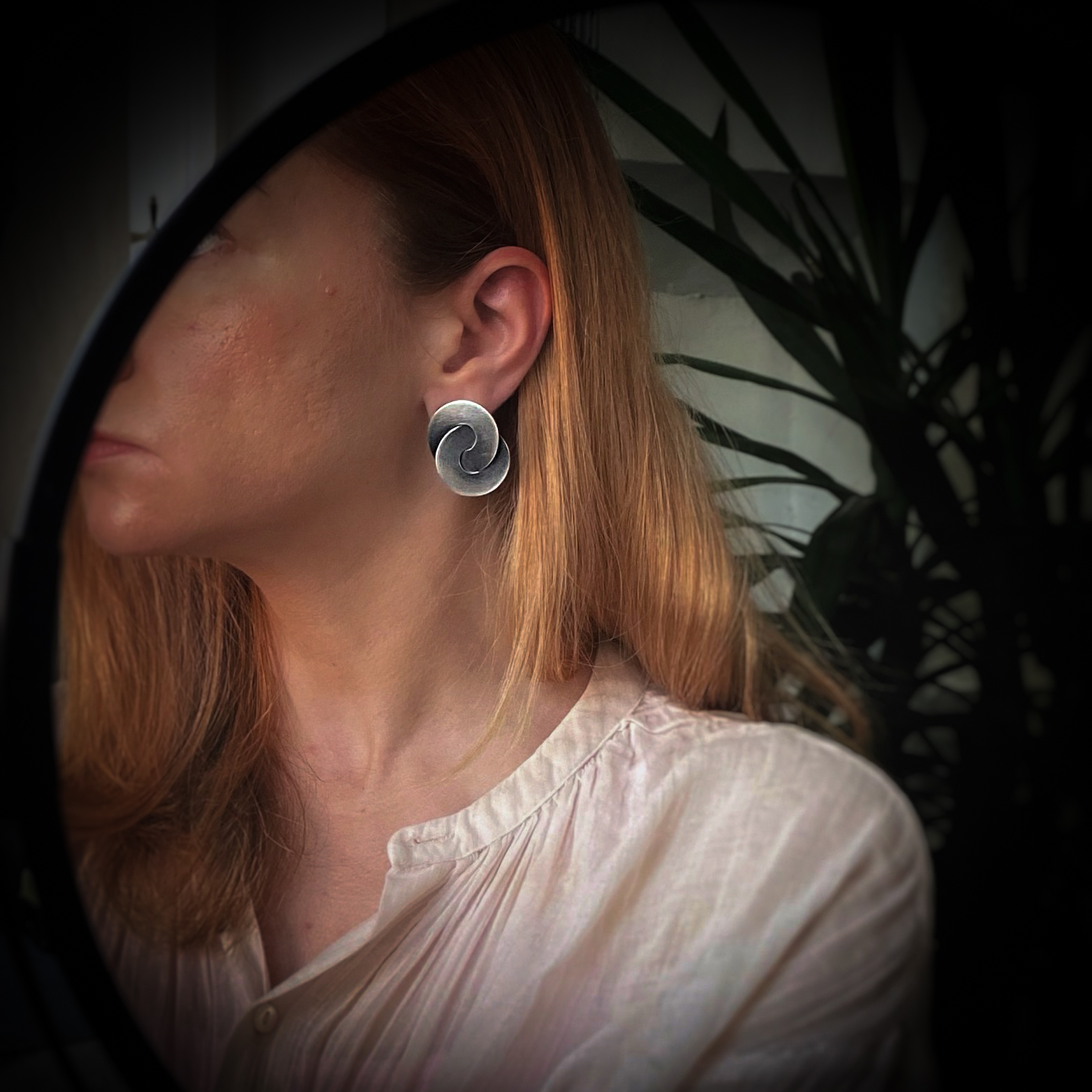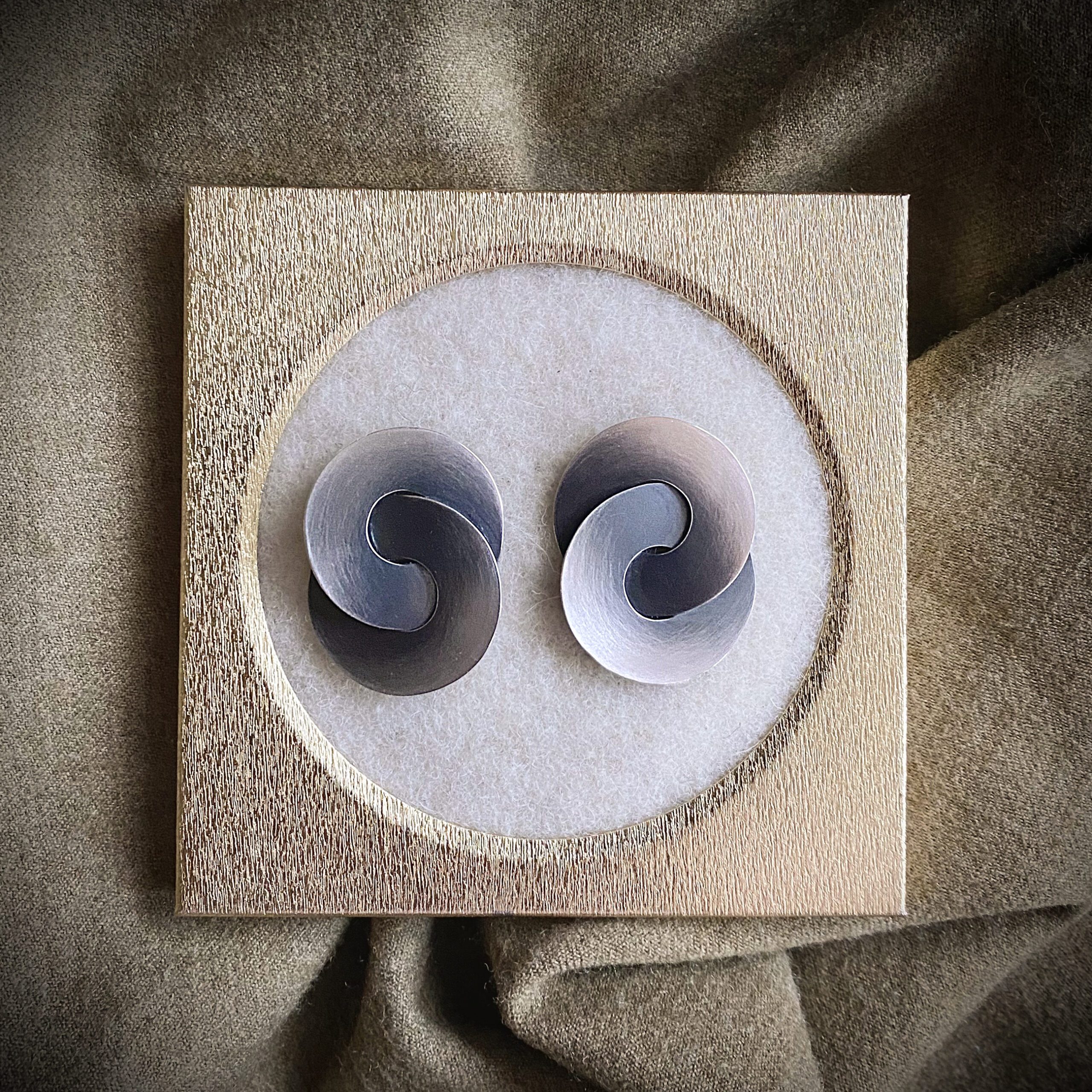 Need tumedaks oksüdeeritud teineteisest läbipõimunud seibidega 925 prooviga hõbedast kõrvarõngad tõelised pilgupüüdjad. Olles ruumilised ja põnevalt mänglevad mõjuvad nad nooruslikult ja värskelt. Topeltseibid on viide lõpmatuse sümbolile omas võtmes. Tänu lihtsale vormile, neutraalsele toonile ja kandmismugavusele jätab ohtralt kombineerimis- ja kandmisvõimalusi erinevateks puhkudeks. Nagu ikka moevoolud tulevad ja lähevad, hõbe jääb. Ehte tagaküljel on hõbeda proovimärgis ja kunstniku meistrimärk. Ehe saadetakse mustas kinkekarbis.