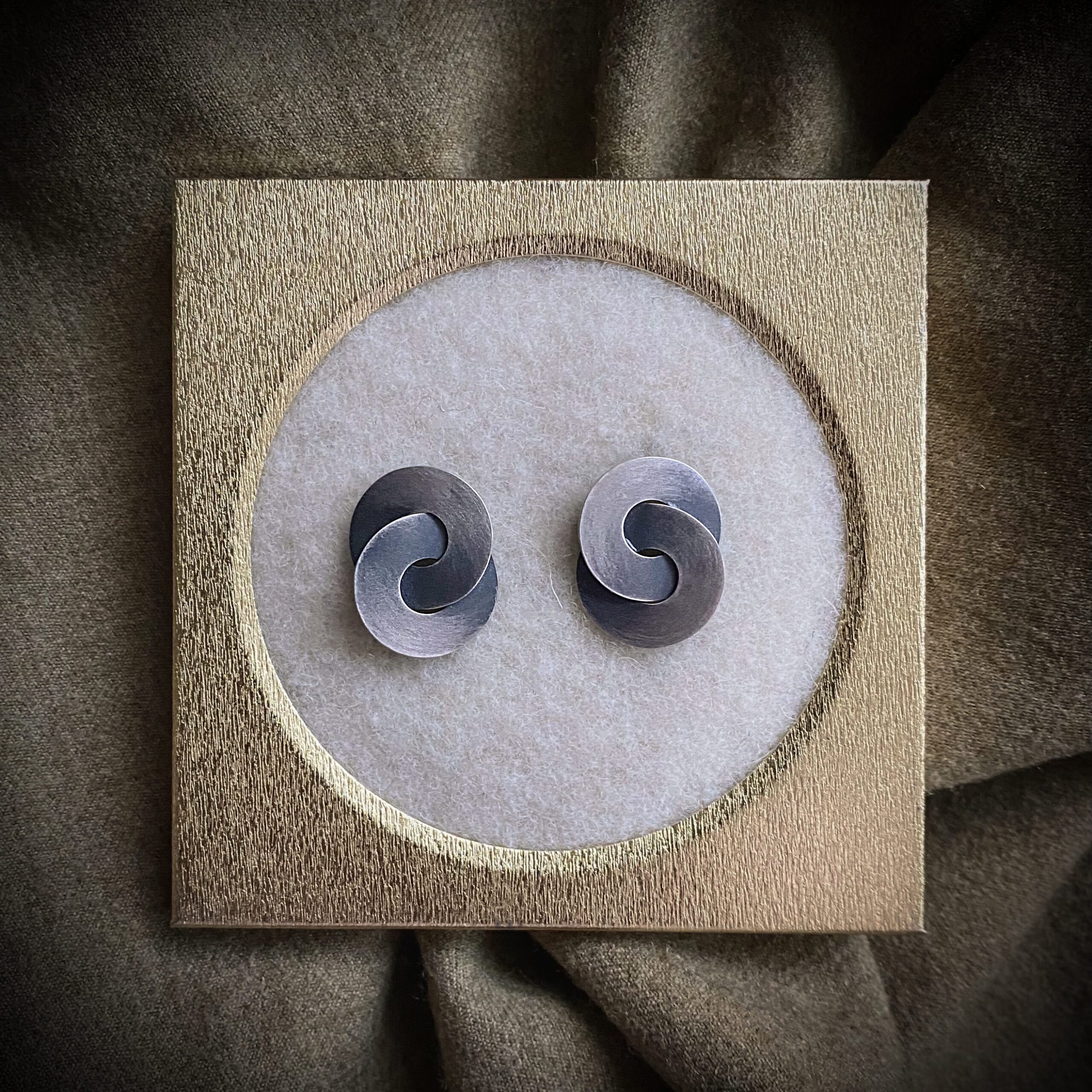 Need tumedaks oksüdeeritud teineteisest läbipõimunud seibidega 925 prooviga hõbedast kõrvarõngad on minimalistlikud pilgupüüdjad. Olles ruumilised ja põnevalt mänglevad mõjuvad nad nooruslikult ja värskelt. Topeltseibid on viide lõpmatuse sümbolile omas võtmes. Tänu lihtsale vormile, neutraalsele toonile ja kandmismugavusele jätab ohtralt kombineerimis- ja kandmisvõimalusi erinevateks puhkudeks. Nagu ikka moevoolud tulevad ja lähevad, hõbe jääb. Ehte tagaküljel on hõbeda proovimärgis ja kunstniku meistrimärk. Ehe saadetakse mustas kinkekarbis.